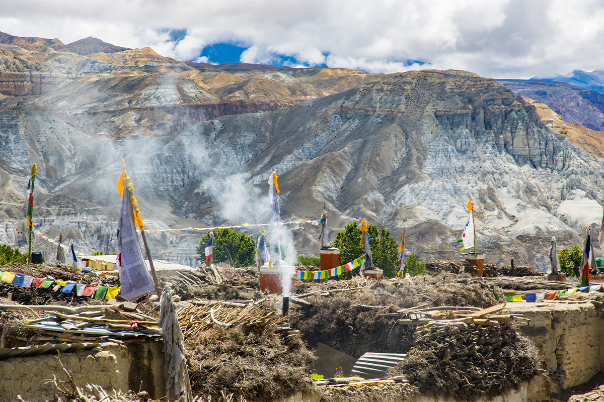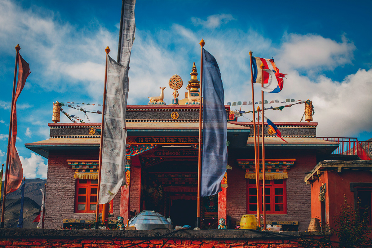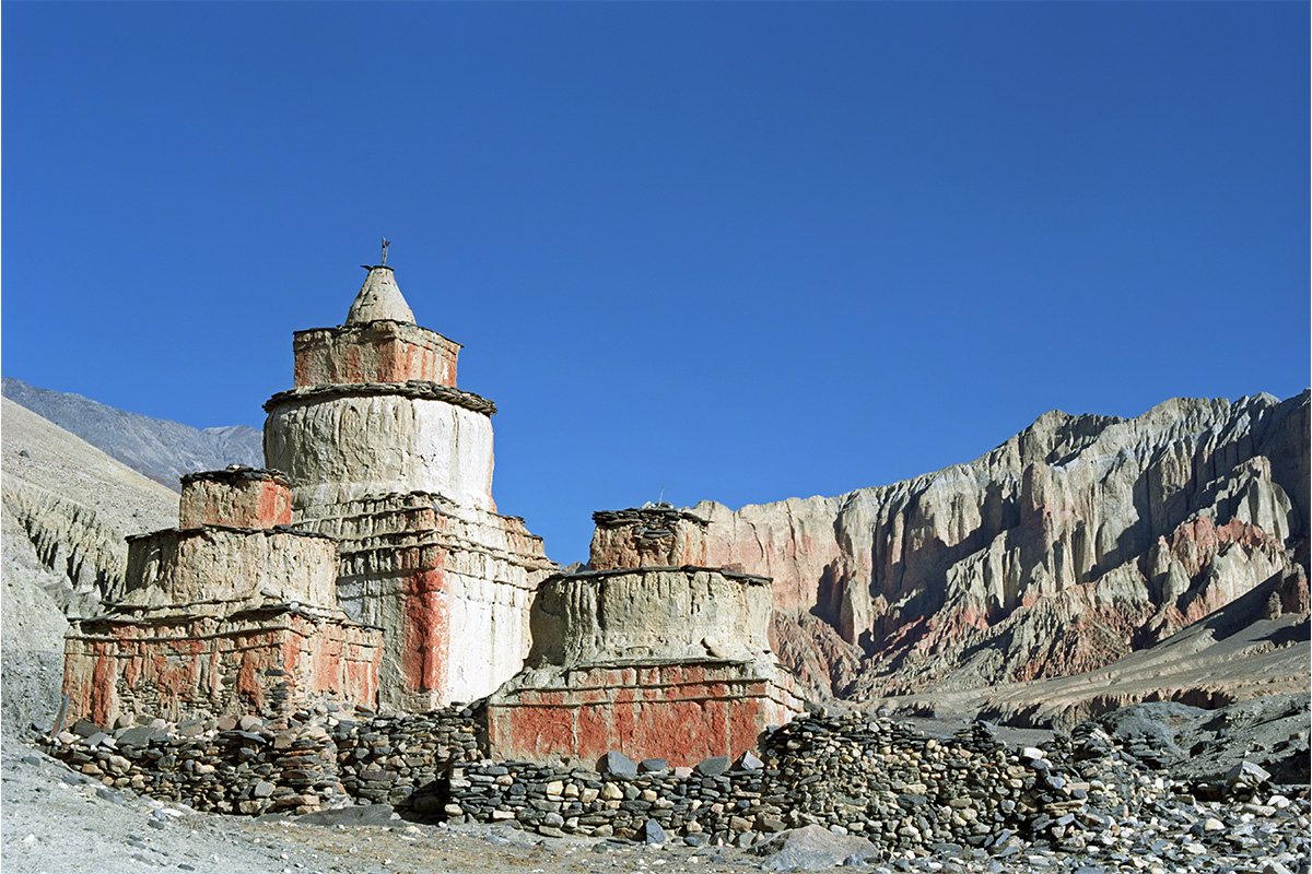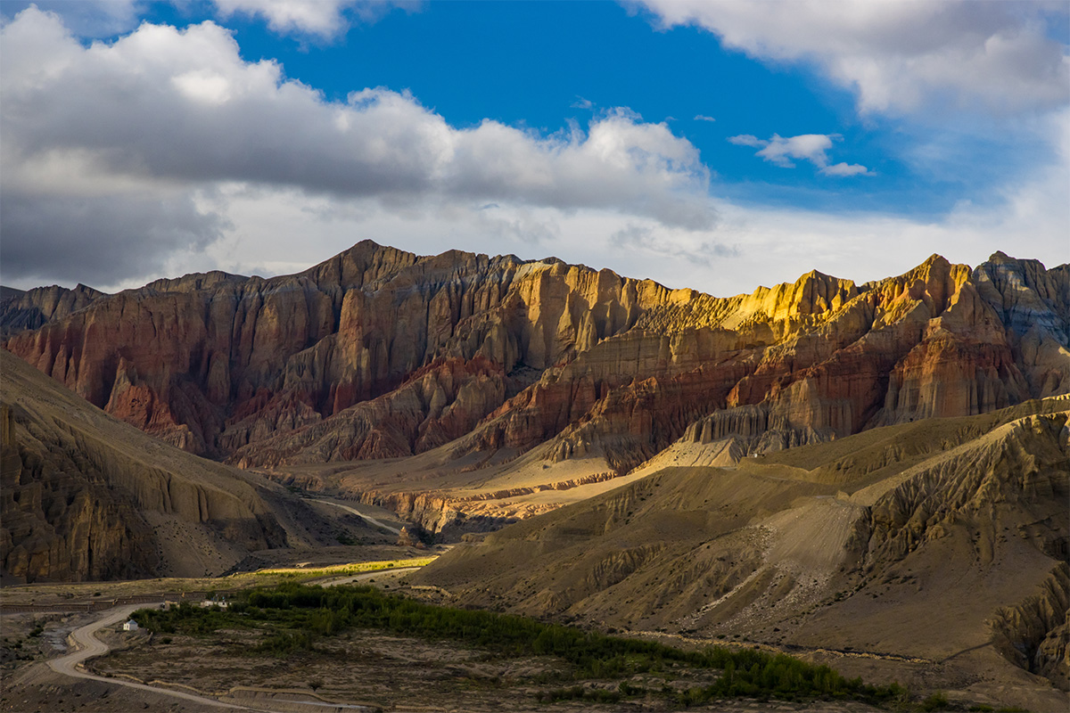 Сегодня мы продолжаем путь в Ломантанг — столицу Верхнего Мустанга. По дороге посетим древний монастырь Царанг с уникальными фресками и библиотекой, затем остановимся у монастыря Гар Гумба, скрытого среди скал. Последняя точка перед финишем — живописный ступа-комплекс Сунгда Чортен.