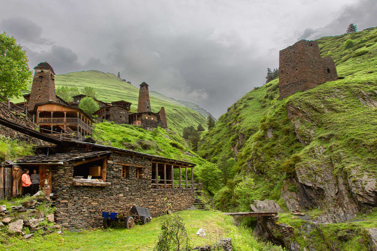 Тушетия — сердце Кавказа. Красивые и труднодоступные дороги Тушетии подарят захватывающие виды крутых горных склонов. Мы посетим Дартло с его старинными башнями, заброшенное село Шенако, ставшее знаменитым после съемок фильма «Мимино», Бочорну, самое высокогорное село Европы, и крепость Дикло. Обед пройдет в семейном ресторане с видом на ущелье. К вечеру мы вернемся в отель в поселке Омало.